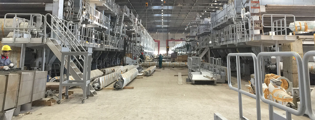 安徽萧县林平纸业有限公司是安徽省最大的高档包装纸生产企业,2018年,我司总承包了林平纸业有限公司年产50万吨高档箱板纸项目安装工程,包括两台(左右手)5600/8OO三叠网长网纸机,制浆车间、造纸车间内所有设备(含复卷机及其辅助设备、胶料系统设备、废纸链板输送机、成品库链板输送线),所有工艺管线、仪表、电气(含桥架)、给排水及室内外消防管道,包括造纸机的所有附属设备(流浆箱、靴压、压光机、施胶机等),以及制浆造纸系统内的所有非标设备及装置的制作安装。此工程工程量大,我司组织了优秀的项目班子,投入大量人力物力,圆满完成任务,目前两台纸机已经正常运转。